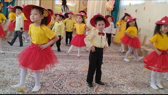 Жүргізуші: Күздің кереметі, байлығы өте көп. Күзде біздің дастарханымыз дәнді дақылдарға, көкөністерге, жеміс-жидектерге толы болсын . Міне, балалар осымен ««Алтын күз әсем айналам,